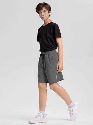 Resinta 3 Pack Boys Athletic Shorts with Zipper Pockets Dry Fit Lightweight Hiking Cargo Shorts for Gym Outdoors 6