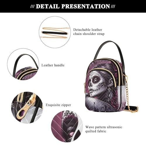 Gothic Sugar Skull Quilted Crossbody Bags for Women – Fashion Design, Vegan Leather - Small Shoulder Handbags for Shopping, Travel, Daily Use 5