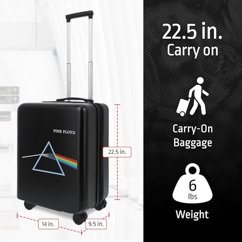 • PINK FLOYD TRAVEL LUGGAGE: This cool and stylish hardshell luggage features the iconic logo from Pink Floyd's classic album Dark Side of the Moon, making this a perfect gift for the Pink Floyd fan in your life, and is perfect for all of your travel needs, with dual zippers to keep your valuables safe and secure inside; this hardshell luggage carrier meets most airline requirements for carry-on luggage and fits into most overhead bins
