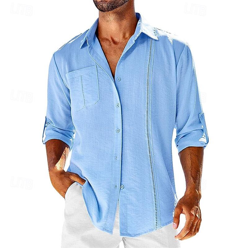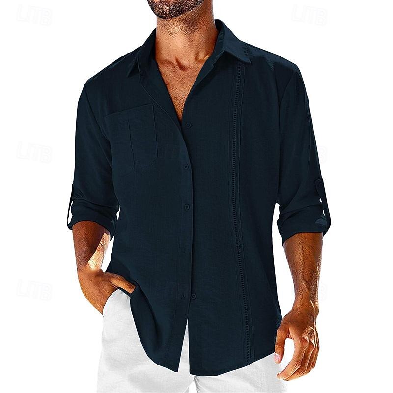 HOT ! Men's Shirt Linen Shirt Cotton Linen Shirt Summer Shirt Beach Shirt Plain Hawaiian Holiday Black White Navy Blue Apricot Long Sleeve Lapel Spring & Fall Clothing Apparel Patchwork