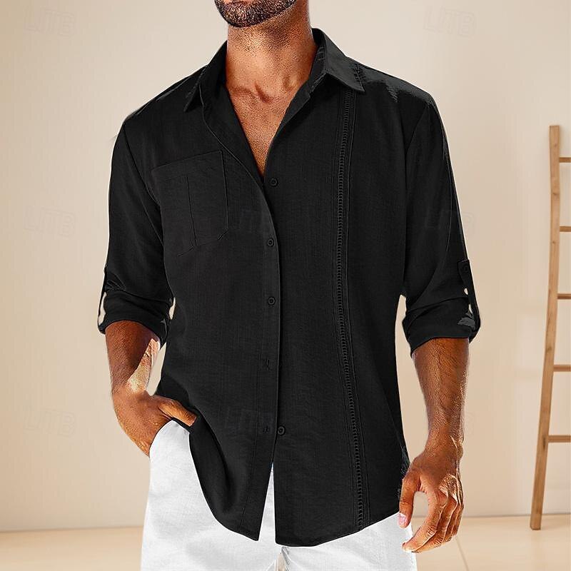 More information about Men's Shirt Linen Shirt Cotton Linen Shirt Summer Shirt Beach Shirt Plain Hawaiian Holiday Black White Navy Blue Apricot Long Sleeve Lapel Spring & Fall Clothing Apparel Patchwork