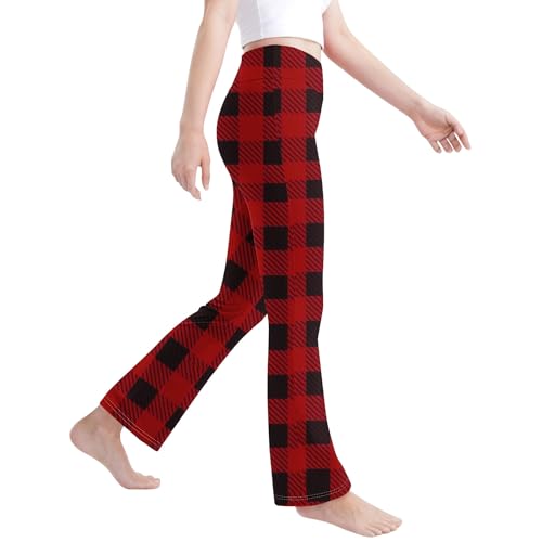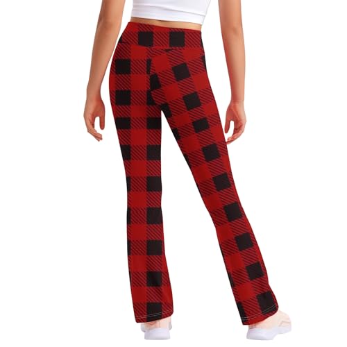 Toddler Girls Plaid Comfort Yoga Pants Teens High Waisted Active Straight Leggings for Kids 2-13 Years 7