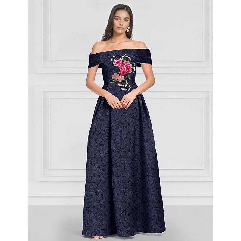 More information about Jacquard Embroidered Floral A-Line Evening Gown Elegant Dress Formal Wedding Floor Length Sleeveless Off Shoulder with Pleats