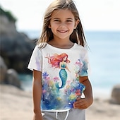 Girls' 3D Mermaid Tee Shirts Short Sleeve 3D Print Summer Active Fashion Cute Kids 3-12 Years Crew Neck Outdoor Casual Daily Regular Fit 3