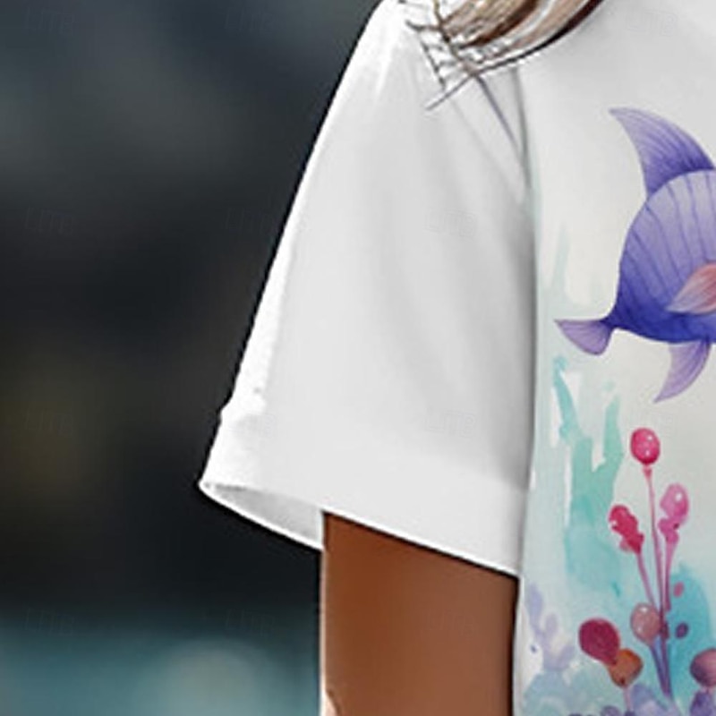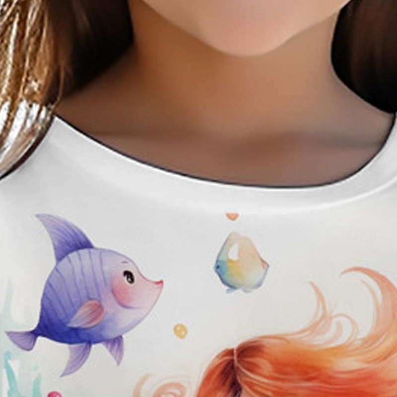 Girls' 3D Mermaid Tee Shirts Short Sleeve 3D Print Summer Active Fashion Cute Kids 3-12 Years Crew Neck Outdoor Casual Daily Regular Fit 6