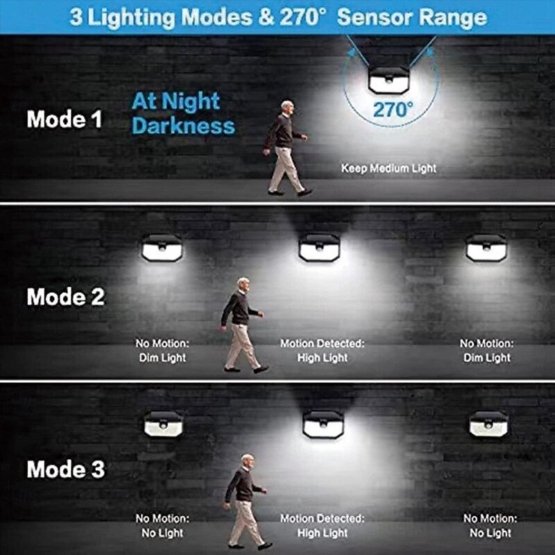 More information about 1 Pc outdoor solar waterproof wall lamp 178 LED Beams motion sensor induction lamp 270 degree wide-angle lighting 3 modes courtyard garden porch balcony garage lighting