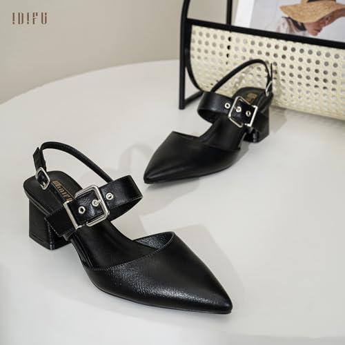 IDIFU IN2 Women's Pumps Closed Toe Chunky Block Slingback Heels Wedding Bridal Bride Prom Formal Dress Shoes for Women Dressy Casual Comfortable Cute Trendy Pointed Toe Low Short Thick Heels 1