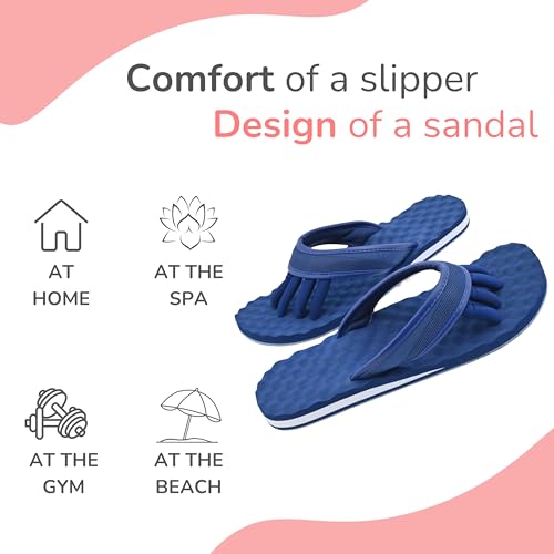 HOT ! EVA Footbed Orthotic Pedicure Flip Flops for Women - Comfortable Arch Support Sandals Women's for Home, Salon, Yoga & Gym - Flip Flops with Built in Toe Separators for Nail Drying (Mesh Navy-XL)
