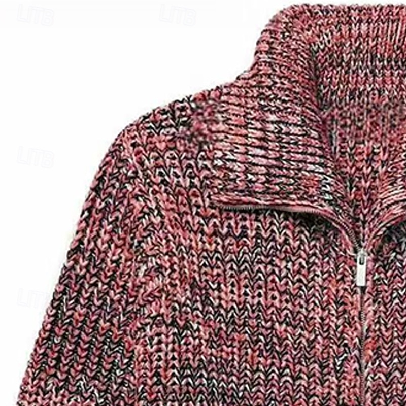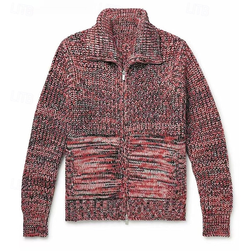 More information about Men's Sweater Cardigan Sweater Ribbed Knit Regular Tops Knitted Plain Fold-over Collar Vacation Fashion Casual Daily Wear Clothing Apparel Spring & Fall Black Red M L XL