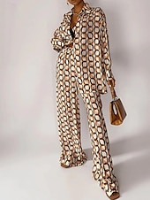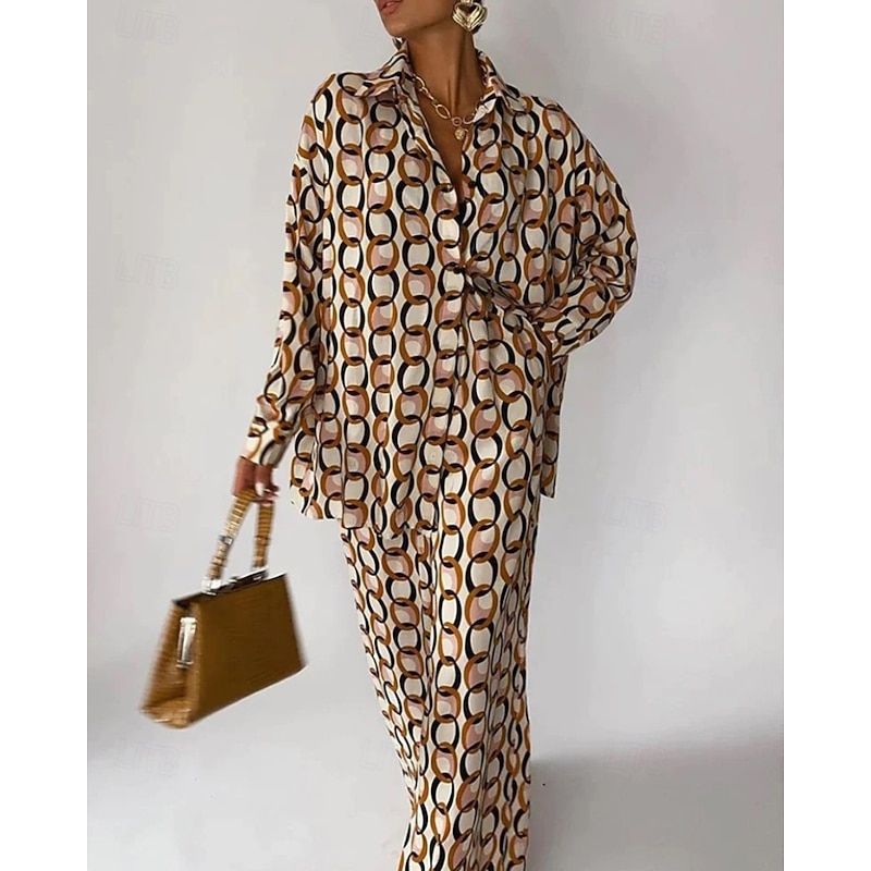 More information about Women's Active Fashion Shirt Blouse Pants Sets Long Sleeve Shirt Collar Floral Print Vacation Going out Brown Fall Regular Fit