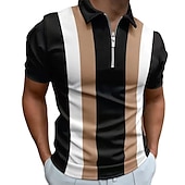 More information about Men's Striped Zip Polo Shirts Golf Shirt Short Sleeve Polo Shirts Collared Shirts Business Casual WorkWear Formal Wear Festival Wear 3D Print Quarter Zip Polo Brown Green Gray