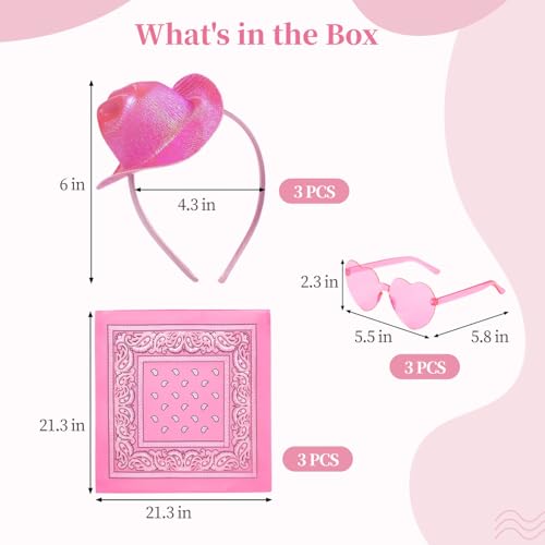 HOT ! 3 Sets Mini Cowboy Hats, Cowboy Hat Headbands Heart Glasses and Bandana Costume Kit, Glitter Western Cowboy Headpiece for Women Men, Pink Cowgirl Party Accessories for Birthday Bachelorette