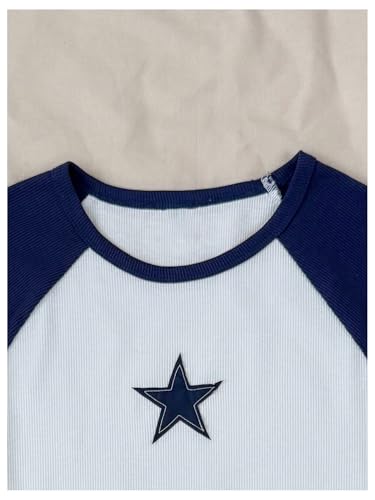 Girl's Star Patchwork Color Block Crop Tops Short Sleeve Crew Neck Ribbed T Shirts 5