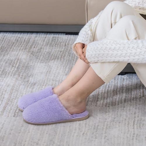 Women's Fuzzy Slip-On Memory Foam House Slippers, Warm Cozy Lightweight Comfy Slippers for Women, Indoor House Shoes 6