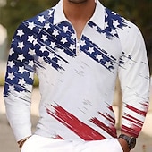 More information about Men's American Flag Veterans Polo Shirts Golf Polos Shirts Long Sleeve Polo Shirts Collar Vacation Party Evening Wear Dailywear Zipper 3D Print Spring Fall & Winter Blue
