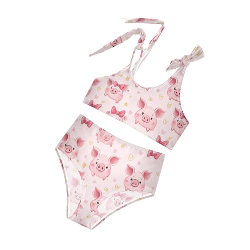 Wusikd Cute Pigs Princess Girls Swimsuits Two Piece Beautiful Bow Swimwear Bikini Set for for Girls Size 3T 2