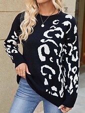 HOT ! Women's Sweater Casual Graphic Leopard Crew Neck Knitted Long Sleeve Regular Tops Knit Weekend Black Gray Fall Winter