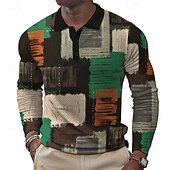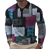 More information about Men's Patchwork Waffle Polo Shirts Golf Shirt Long Sleeve Polo Shirts Collared Shirts Casual Formal Outdoor Dailywear Buttons 3D Print Spring Fall Winter Yellow Blue Purple