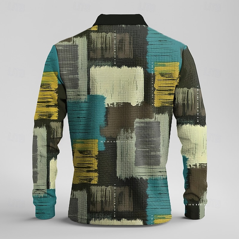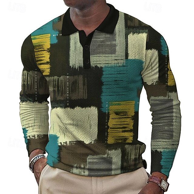 Men's Patchwork Waffle Polo Shirts Golf Shirt Long Sleeve Polo Shirts Collared Shirts Casual Formal Outdoor Dailywear Buttons 3D Print Spring Fall Winter Yellow Blue Purple 10