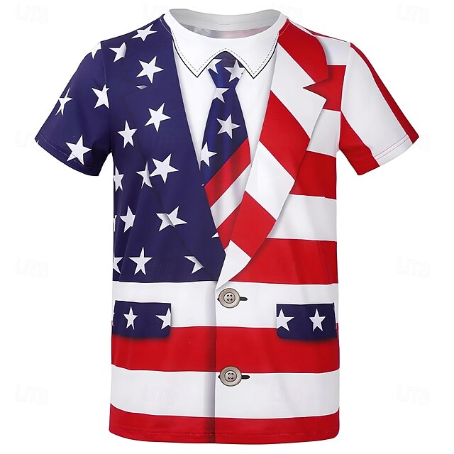 More information about American Independence Day Men's American US Flag Tuxedo T Shirt Short Sleeve T shirt 3D Print Crew Neck Shirt Exaggerated Designer Party Holiday Club Blue Summer Spring Clothing Apparel S M L XL XXL