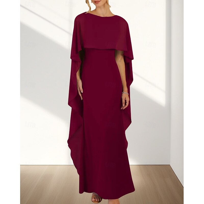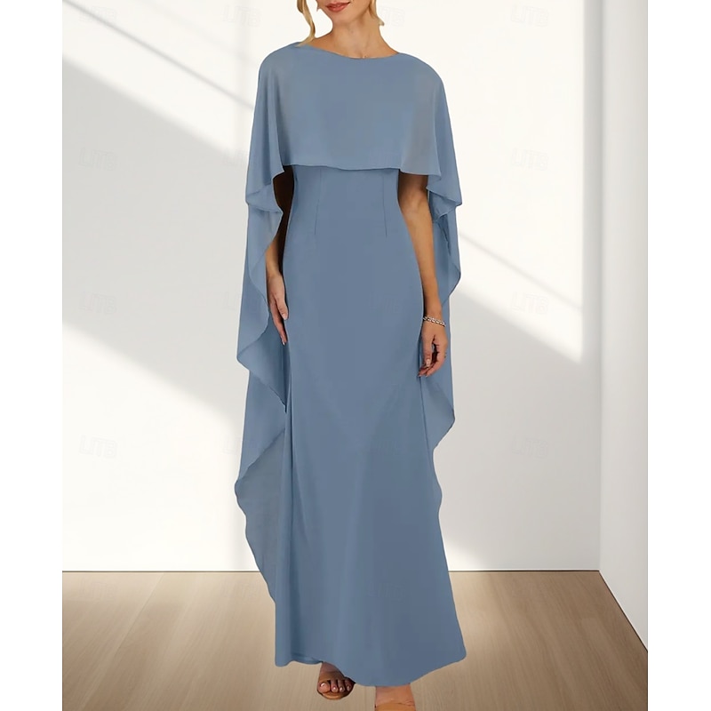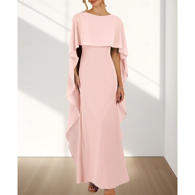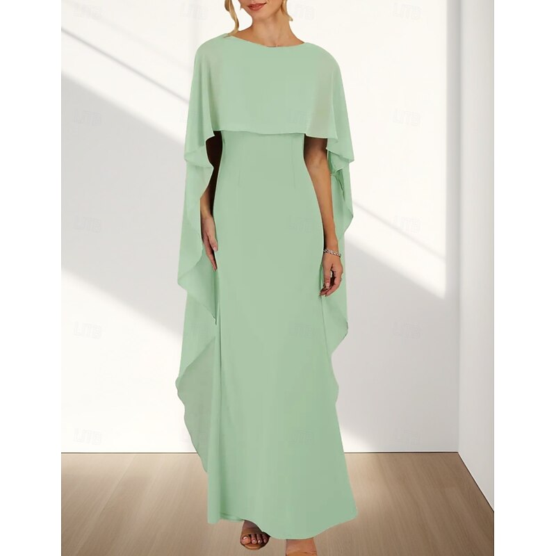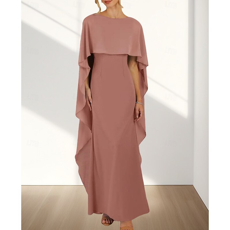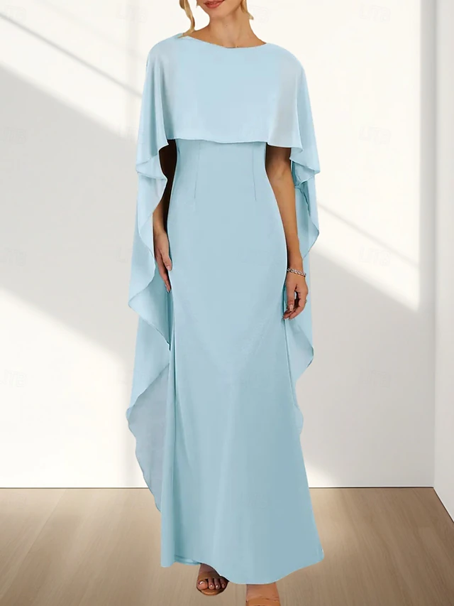 HOT ! Mermaid / Trumpet Wedding Guest Dresses Elegant Dress Wedding Guest Engagement Floor Length Sleeveless Crew Neck Chiffon with Ruffles
