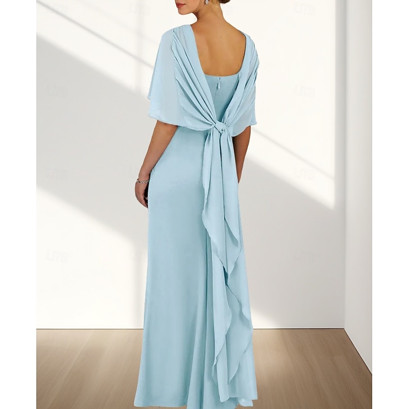 More information about Mermaid / Trumpet Wedding Guest Dresses Elegant Dress Wedding Guest Engagement Floor Length Sleeveless Crew Neck Chiffon with Ruffles