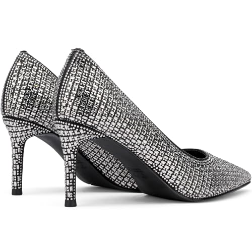 • ELEGANT DESIGN: Sophisticated pointed-toe pumps adorned with sparkling rhinestone crystal embellishments in a striking geometric pattern
