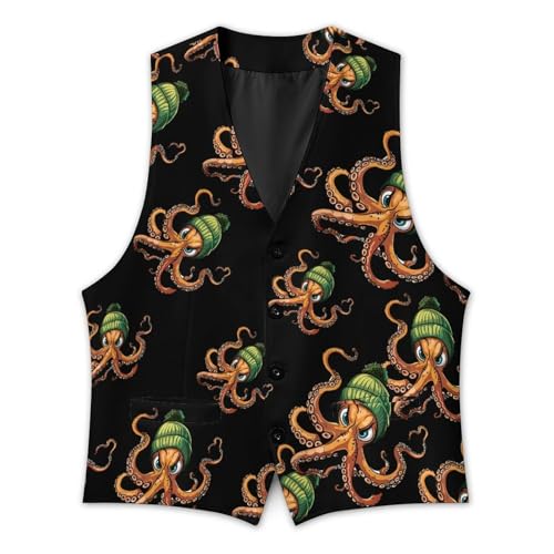 HOT ! Cephalopod Octopus Men's Suit Vest Waistcoat Vests Formal Dress with 2 Pockets for Business Casual Tuxedo