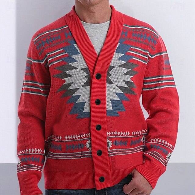 More information about Men's Fair isle Sweater Cardigan Sweater V Neck Casual School Vacation Daily 3D Print Knitting Keep Warm Long Sleeve Spring Fall Winter Red