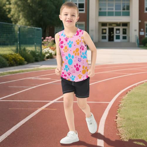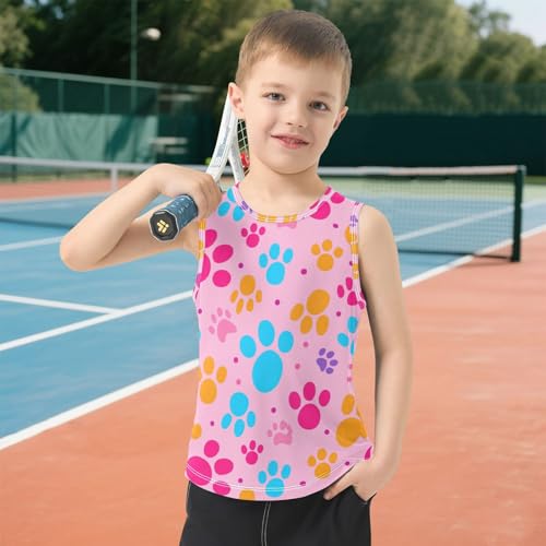 J JOYSAY Colorful Dog Paw Print Boys Tank Top Sleeveless Muscle Shirts Quick Dry Kids T-Shirts 3-15T 3