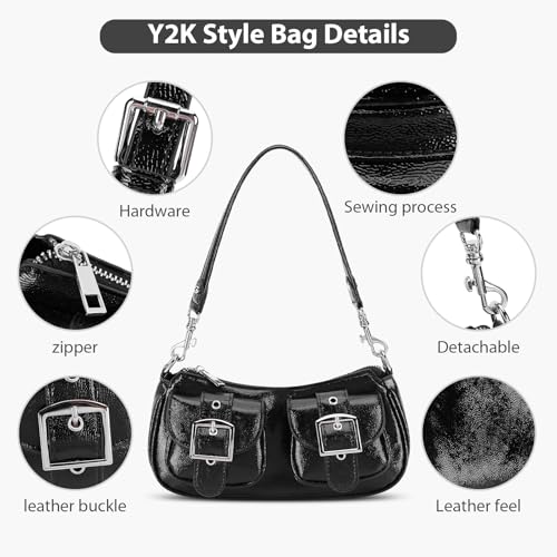 • ⭐【Leather Shoulder Bag】: Y2K shoulder bag is made of artificial leather with polyester lining. Smooth zipper and exquisite hardware accessories show the craftsmanship quality
