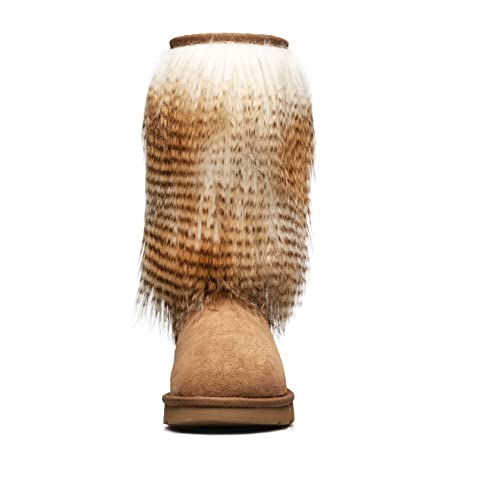 AUMU Women's Faux Fur Boot Furry Fluffy Short Snow Boot Sheep Insole 6