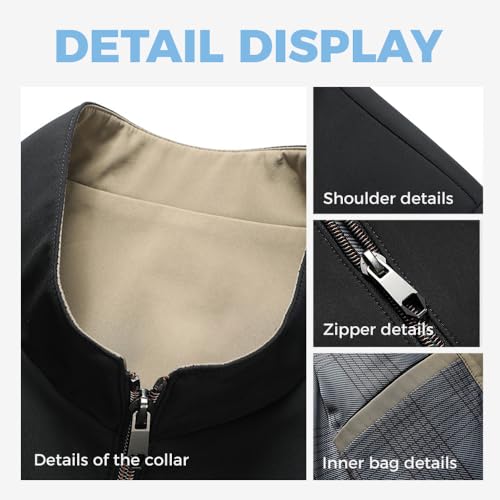 Fabric type: PolyesterCare instructions: Machine WashOrigin: ImportedComfy Lightweight: Made from plush polyester twill, this light jacket for men feels great all day. Perfect for work or weekend wearStand Collar Style:The standing collar jacket men look keeps you polished. Full zipper front and clean lines work for the office or casual outingsBig Pockets: Features two side pockets plus a hidden inner pocket (fits phones/wallet). Great as a travel jacket with hidden pockets for keeping things secureWind Resistant: This wind breaker handles cold days. Light enough for spring/fall but layers well under a men's coat in winterDress Up or Down: Pair this zippered casual jacket with khakis for work or jeans for weekends. The black jacket men option goes with everything in your closet Perfect for everyday use. first-class materials and excellent craftsmanship ensure long-lasting durability.