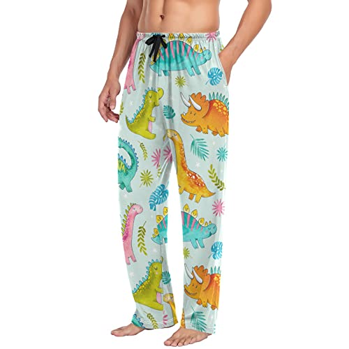 HOT ! Watercolor Cute Dinosaurs Pajama Pants Palm Leaves Star Men's Pajama Bottoms Lounge Sleepwear PJs Sleep Pants S
