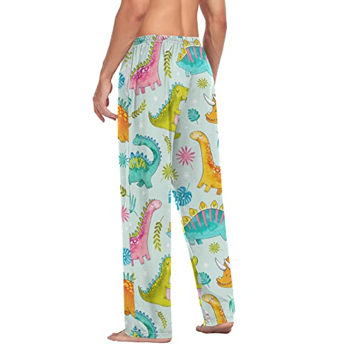 Watercolor Cute Dinosaurs Pajama Pants Palm Leaves Star Men's Pajama Bottoms Lounge Sleepwear PJs Sleep Pants S 1