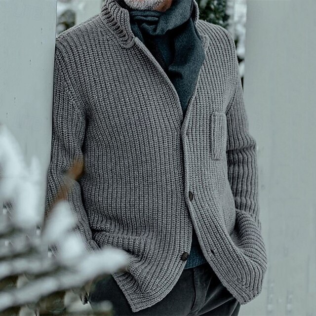 HOT ! Men's Cardigan Sweater Cropped Sweater Knit Sweater Ribbed Knit Regular Tops Pocket Buttons Plain Stand Collar Fashion Classic Vacation Daily Wear Clothing Apparel Fall Winter Black Navy Blue S M L