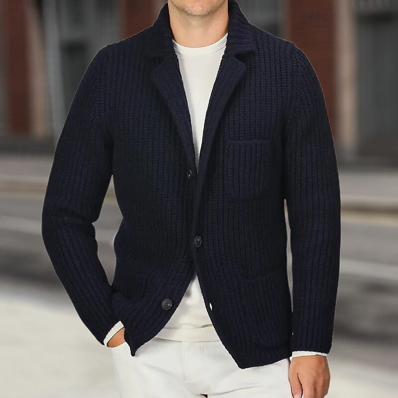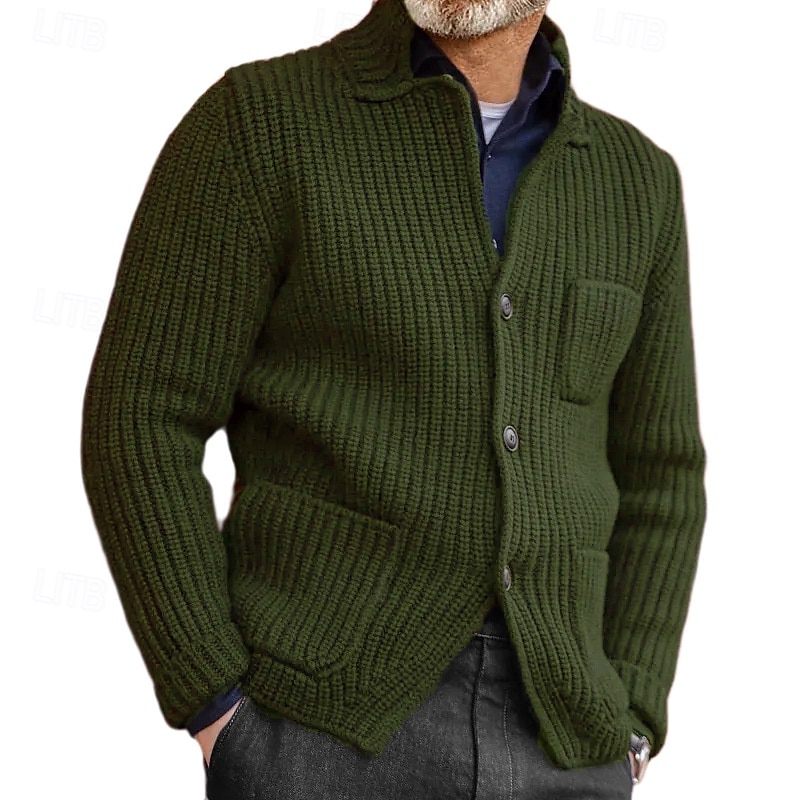 Highlights - Stay cozy and stylish with our classic long sleeve men's sweater - Perfect for fall and winter, ideal for date nights or vacations - Features a stand collar and ribbed knit style for added detail - Designed with buttons and pockets for a timeless look - Versatile enough to dress up or down for any casual occasion