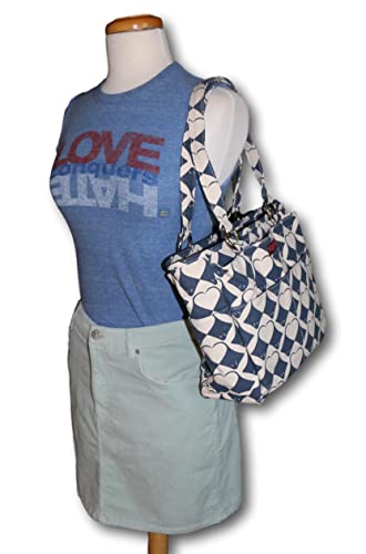 • Cute polka dot lining. Measures 10" H X 11"W X 4.5"D. Strap drop length 9