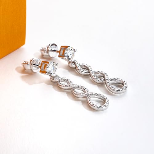 HOT ! Moissanite Dangle Earrings Infinity Drop Earring for Women D Color VVS1 Clarity Round Brilliant Cut S925 Sterling Silver for Her Mom Wife with Certificate