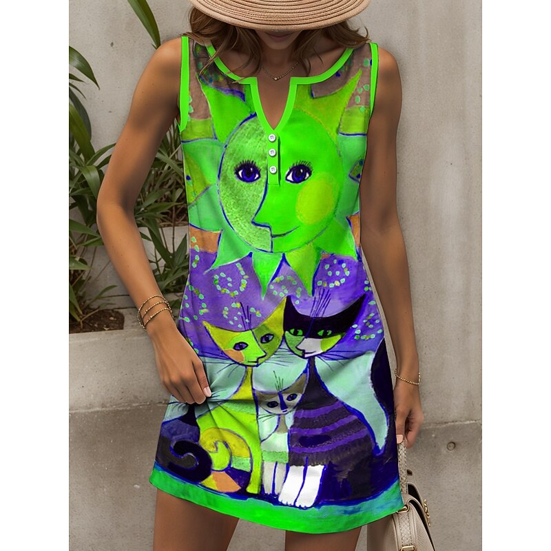 Women's Mini Dress Sundress Shift Dress Off The Shoulder Dress Vacation Casual Outdoor Going out Regular Fit Graphic Animal Cat Sleeveless V Neck Yellow Red Blue Purple Summer Spring 12