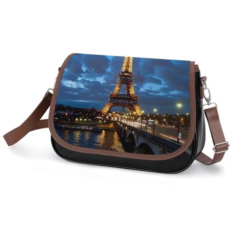 HOT ! Eiffel Tower Paris Night Crossbody Purses for Women with Adjustable Strap, Retro Trendy Tote Handbag Shoulder Bag