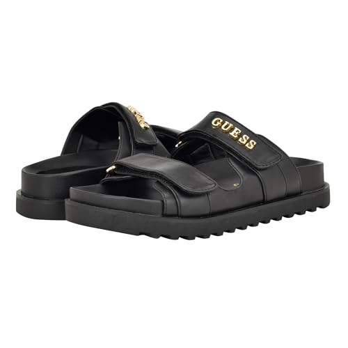 • Go from spring – to – summer in the GUESS Fabulon slide. The double strap with slight logo hardware detailing and the molded footbed will give you comfort while elevating any look. Est. 1981, Guess is a global lifestyle brand and a symbol of a young, adventurous lifestyle.