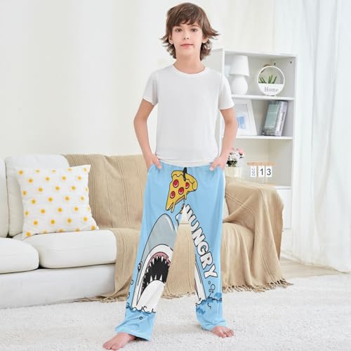 Boy's Pants Hungry Shark Slice of Pizza Jogger Pants Elastic Waist Long Bottoms Trousers with Pockets 6-14 Years 6