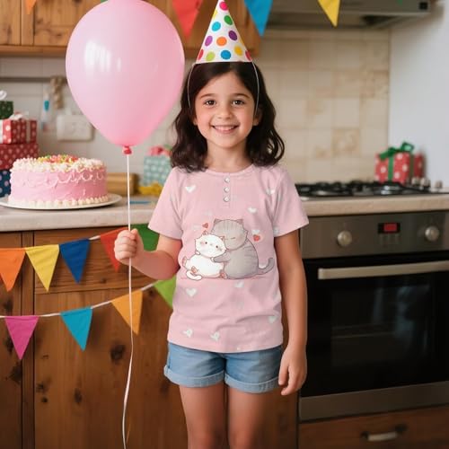 • FEATURE: Summer t-shirt, three button plackets,round neck,short sleeve,easy to wear with jeans, skirts,shorts, pants, leggings,make your daughter look adorable and fashionable