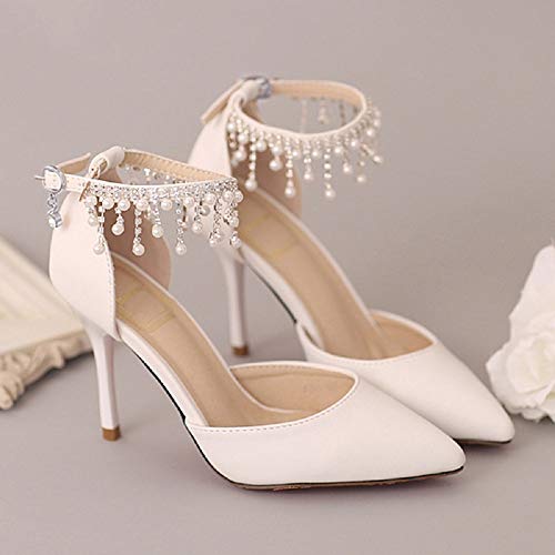 HOT ! Pointed Toe Pumps High Heel Ankle Strap Dress Shoes Wedding Party Pump with Pearl 3.54”
