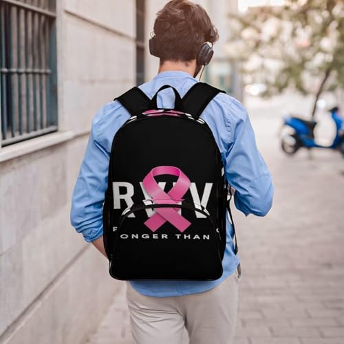 Large Capacity Breast Cancer Survivor Pink Ribbon Black Backpack for Travel Work College, Compartment Bag with Side Pockets, Daypack for Women Men 1