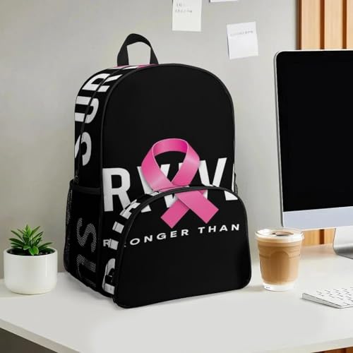 More information about Large Capacity Breast Cancer Survivor Pink Ribbon Black Backpack for Travel Work College, Compartment Bag with Side Pockets, Daypack for Women Men