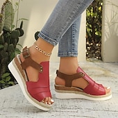 HOT ! Women's Red and Brown Platform Sandals – Faux Leather Espadrille Wedge Sandals with Buckle Strap for Summer Travel, Beach Outings, and Casual Wear
