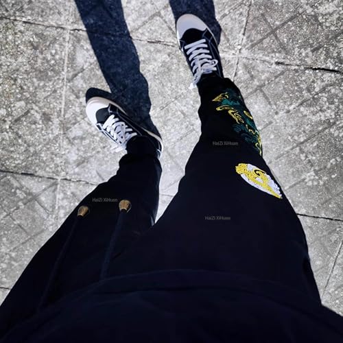 • Authentic Japanese High Street Style & Silhouette: Embrace the essence of contemporary Japanese urban fashion with the relaxed, modern cut of these harem pants. Featuring intricate dragon embroidery as a focal point and finished with practical jogger cuffs, these trousers masterfully blend traditional Japanese folk art motifs with a cutting-edge streetwear silhouette for an undeniably unique urban look.
