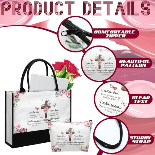 Aliceset 2 Pcs Christian Gifts for Women Spanish Canvas Tote Gifts Religious Bible Verse Tote Bag with Makeup Bag 6
